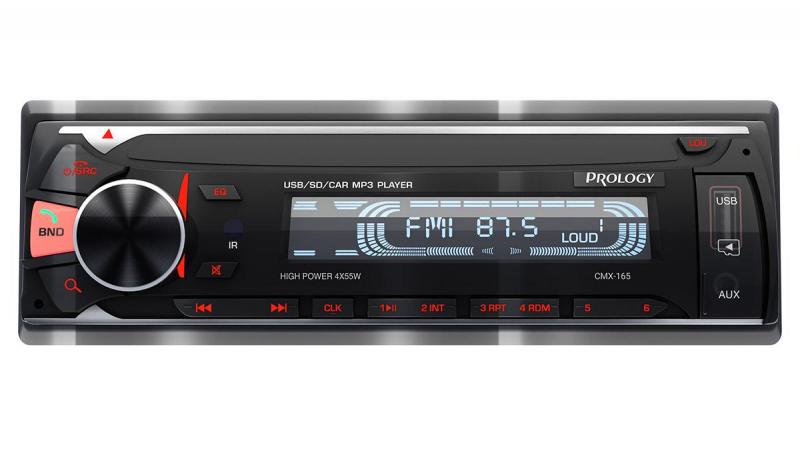 PROLOGY CMX-165 — FM SD/USB ресивер с Bluetooth, это автомагнитола стандартного размера 1DIN, которая обеспечивает прием радиостанций в диапазоне FM, воспроизведение медиафайлов, записанных на карты памяти USB / microSD, передачу звука с внешних источников, а также управление мобильным телефоном через интерфейс Bluetooth (ver. 4,2). Кроме того, устройством можно управлять с помощью приложения PROLOGY MUSIC, установленного на Ваш смартфон с операционной системой Android и iOS.*