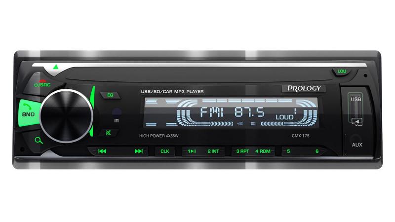 PROLOGY CMX-190 — FM/USB-ресивер с Bluetooth®, стандартного размера 1DIN, который обеспечивает прием радиостанций в диапазоне FM, воспроизведение медиафайлов форматов MP3, WAV и FLAC, записанных на USB-накопители, передачу звука с внешних источников через линейный аудиовход и беспроводной интерфейс Bluetooth®. Поддерживается управление мобильным телефоном через интерфейс Bluetooth® (ver. 4.2). Управление и настройка с помощью приложения для Android или iOS.